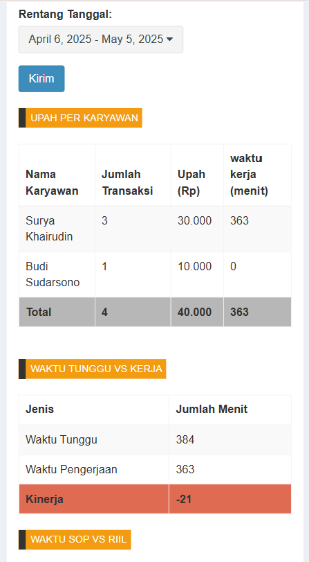 Laporan Analisa Waktu Pengerjaan oleh karyawan.