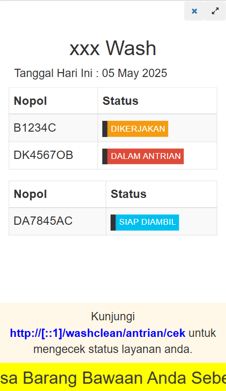Pelanggan bisa cek status pengerjaan melalui handphone.